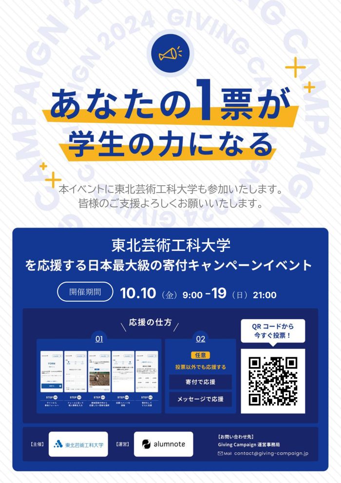芸工大・芸工大生を応援するオンラインチャリティイベント「Tohoku University of Art & Design GIVING CAMPAIGN」が開催中です