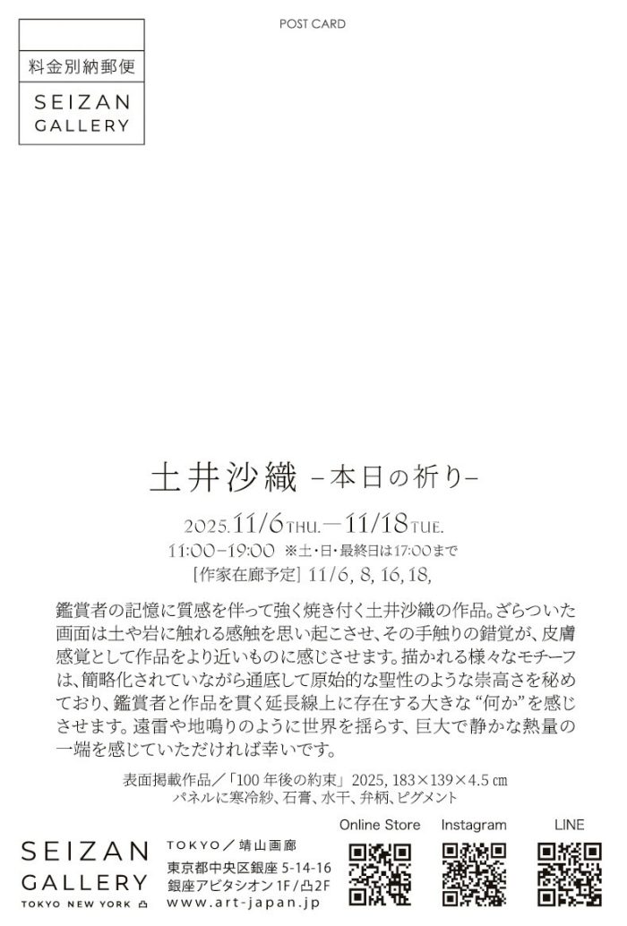 会期:2025年11月6日[木]~11月18日[火] ※23日・30日休廊