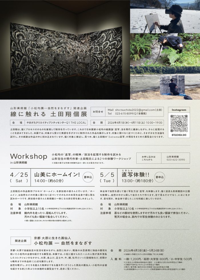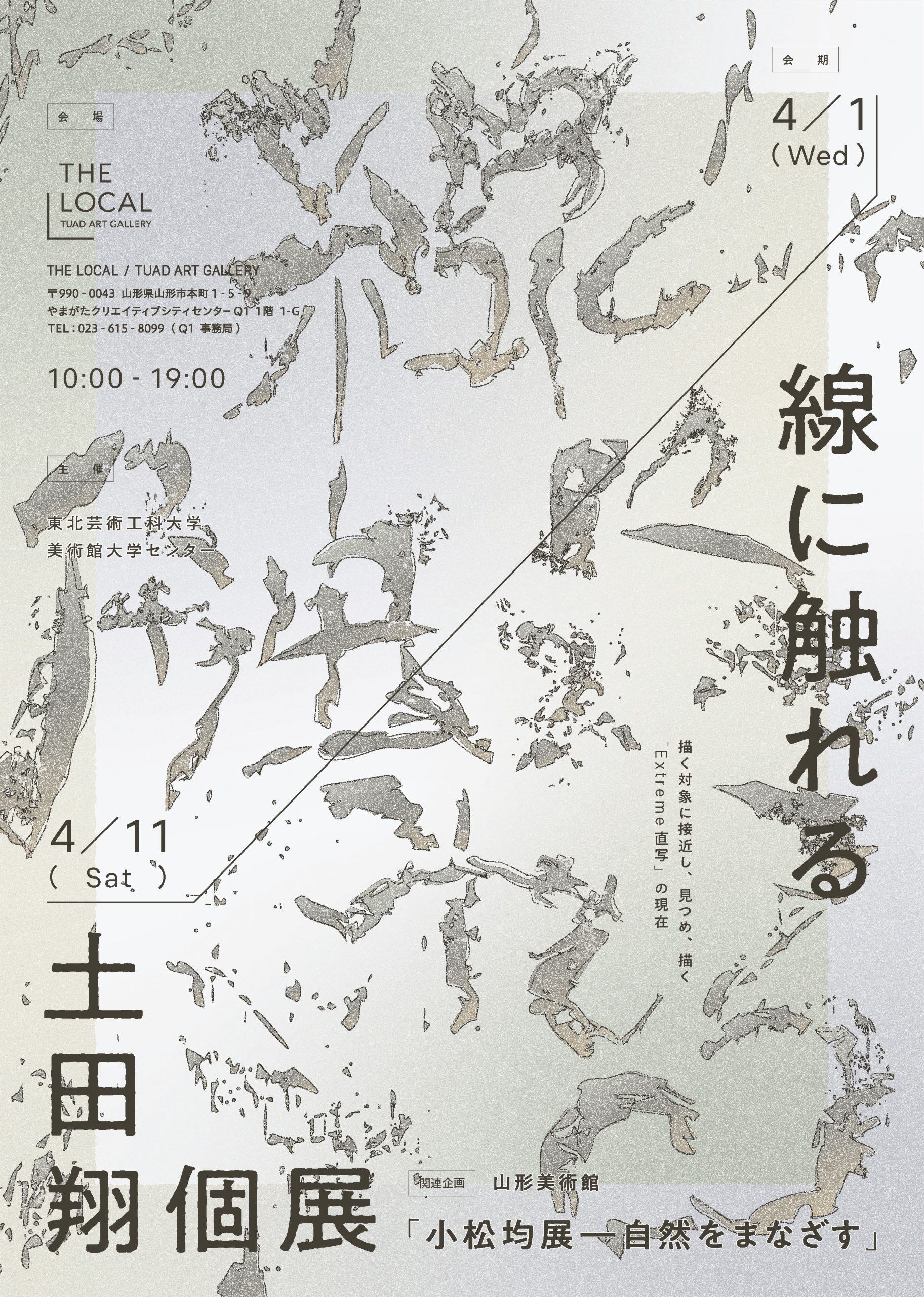 大学院複合芸術領域修了生の土田翔(つちだ・しょう)さんが4月1日より やまがたクリエイティブシティセンターQ1・THE LOCAL(山形県・山形)を会場に「線に触れる 土田翔個展」を開催されます。
